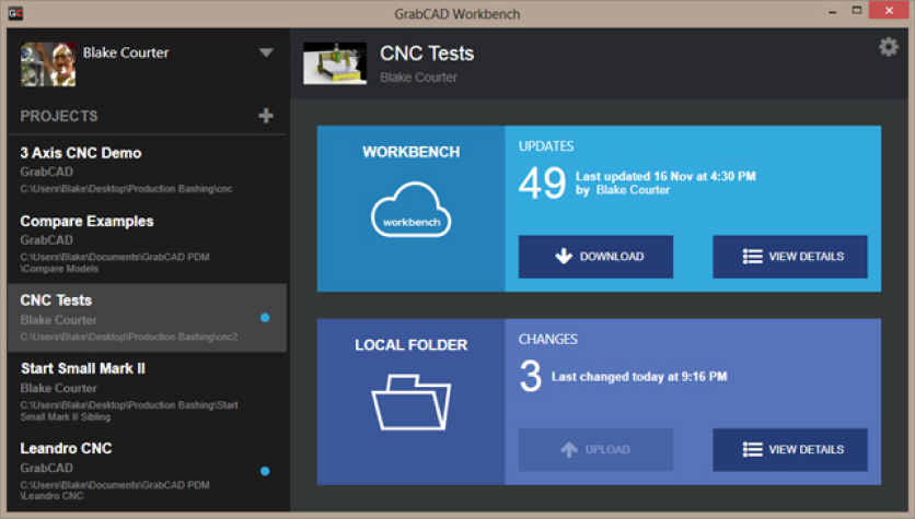 While GrabCAD Workbench does not offer all of the core PDM features, it is a great storage solution for hardware teams compared to Google Drive and Dropbox for several reasons. First, Workbench is also a cloud first solution. Being cloud first, GrabCAD is able to onboard new teams without the high costs associated with setting up traditional PDMs on premises. For this reason and due to GrabCAD’s 3D printing-focused business model since its acquisition by Stratasys, it was able to offer the product for free to the market. Second, GrabCAD leveraged its cloud first architecture to create an easy-to-use browser experience and desktop app. The browser version and the desktop app are both focused on file storage, saving changes, and straightforward collaboration. Workbench’s focus on the essential features makes it simple to do the most important workflows of PDM without long training sessions. For example, it is easy to save changes and see where your files are when using the Workbench desktop app. Even though it constantly syncs to the cloud, no files become difficult to track down or lost.